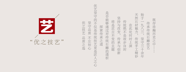 曲陽(yáng)縣優(yōu)藝園林雕塑有限公司是一家致力于城市雕塑及園林工程雕塑創(chuàng)意、設(shè)計(jì)、制作、安裝為一體的專(zhuān)業(yè)性雕塑工程公司。公司坐落于全國(guó)著名的雕刻之鄉(xiāng)——河北省保定市曲陽(yáng)縣,為適應(yīng)日益增長(zhǎng)的客戶(hù)需求及高標(biāo)準(zhǔn)的工程定制項(xiàng)目,多位志同道合的傳統(tǒng)手工藝人合資組建本公司。
